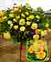 Троянда на штамбі “Каталіна” — розкішна декоративна троянда з неповторним шармом та сонячною енергією. Її великі, густо махрові квітки вражають теплим жовто-лимонним відтінком із ніжним золотистим серцем. У міру розпускання бутони набувають м’якого кремового тону, створюючи чарівну гру кольорів, яка особливо ефектно виглядає на тлі темно-зеленого блискучого листя.
